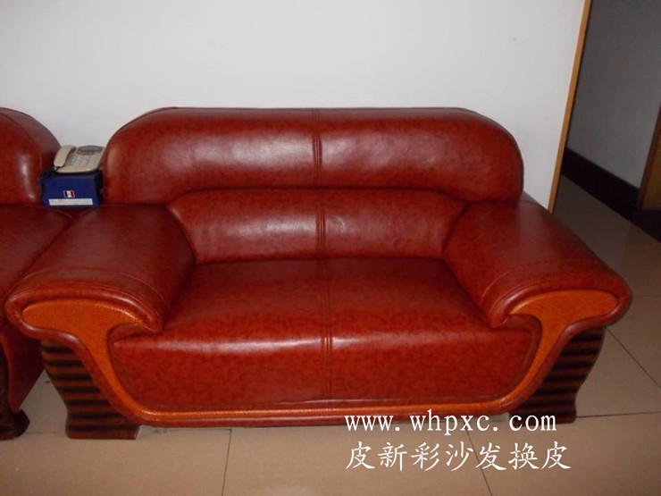 休闲办公皮沙发换皮,这种沙发比较便宜,有的就是防真皮做的,换个耐用点的仿皮皮2千左右,可以用5年以上不会脱皮裂面,要看木架海绵质量如何,才决定有无换皮价值,皮新彩沙发翻新换皮热线:13585956565