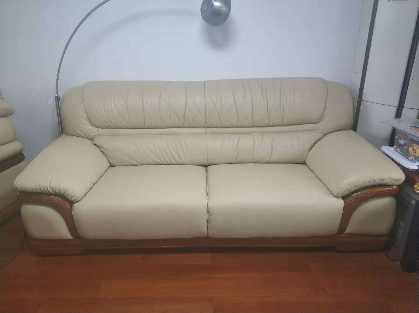 沙发换皮,客户早年买的半皮沙发,据说10年前买的时候1+3就要1万多,使用多年后框架海绵都挺好的,扔掉可惜,再买也不便宜。我们推荐客户单人沙发清洗上色翻新,3人沙发其中一个扶手和坐垫皮已经破损,可以局部换皮,不需要更换的地方可先做清洁,然后上色翻新,这样做下来只需…