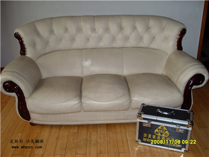 白沙发改色,白沙发客户嫌容易脏,想改成红色,改色的工作量相当于翻新3套沙发,得整整一天时间,收费在1200元左右,皮新彩用专用的强粘成膜剂给他进行改色,改色对皮子要求较高,仿皮无改色价值,二层皮不能改色,真皮太软不能改色,太硬不能改色,只能改不软不硬的头层牛皮。…
