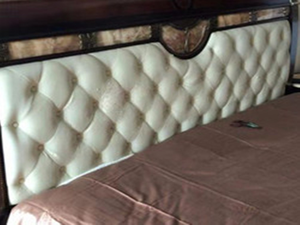 仿真皮欧式床头,两年后出现脱皮开裂,一般损坏的都是男同志的那一边,这种床有点麻烦要拆下来制版缝好,再包上去还要拉扣子,要是换好一点的仿皮包工包料大概1千左右,换真皮得2至3千元,上海皮新彩专业从事沙发床头换皮翻新18年,咨询电话:13585956565