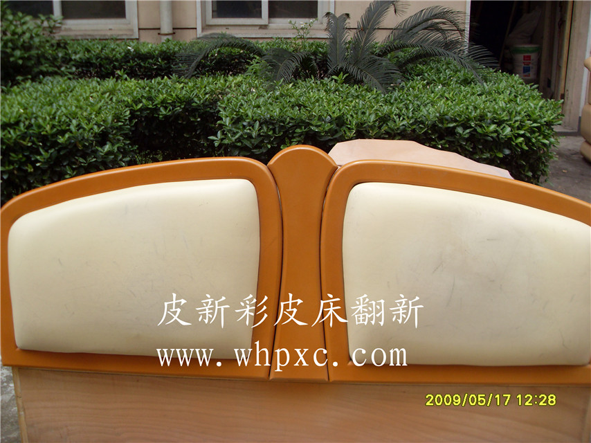 这个床头是真皮的,皮子完好无损就是出现脱色,我们给他上色就行,上色之后又像新的一样,这种真皮的还可以进行改色,这样的上色翻新收费300左右,武汉新彩美居沙发皮床翻新,16年专业经验咨询电话:13585956565