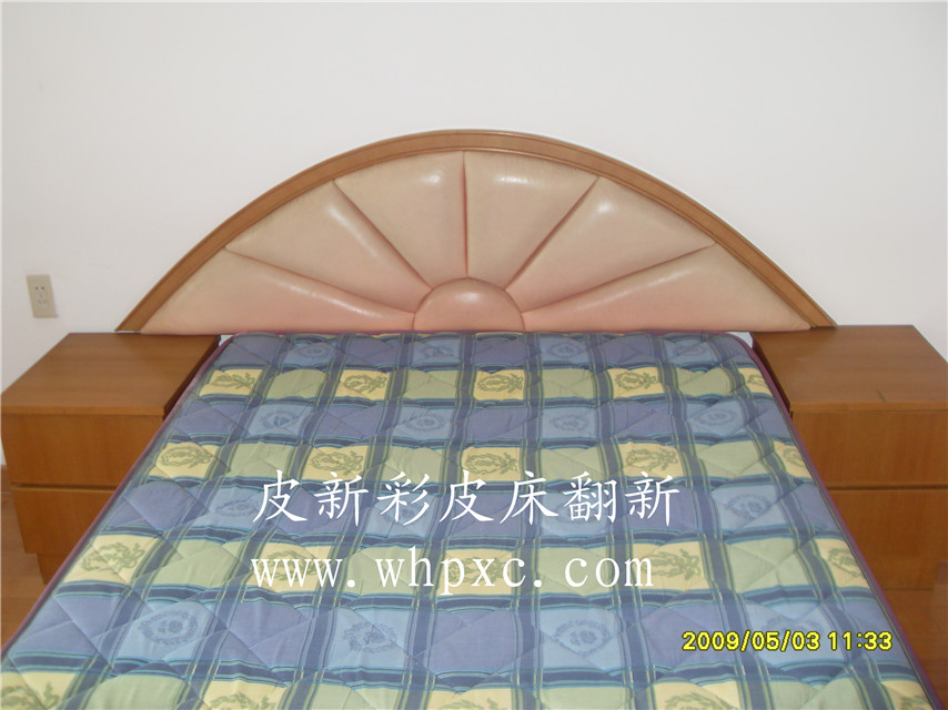 仿皮床头用几年会变旧,洗也洗不干净,上门换皮半个小时可以搞定,用好一点的人造皮用6年没有问题,像这种床头是直包的连工带料200左右就可以了,皮新彩专业从事皮床沙发换面,咨询电话:13585956565