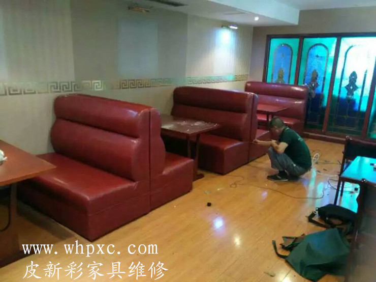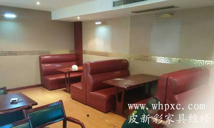 咖啡厅卡座换皮翻新,咖啡厅卡座都是定制的要换新的不但周期长而且成本高,让我们翻新换皮,又快又便宜并且不影响营业,皮新彩餐厅家具维修热线:13585956565