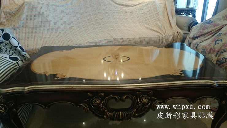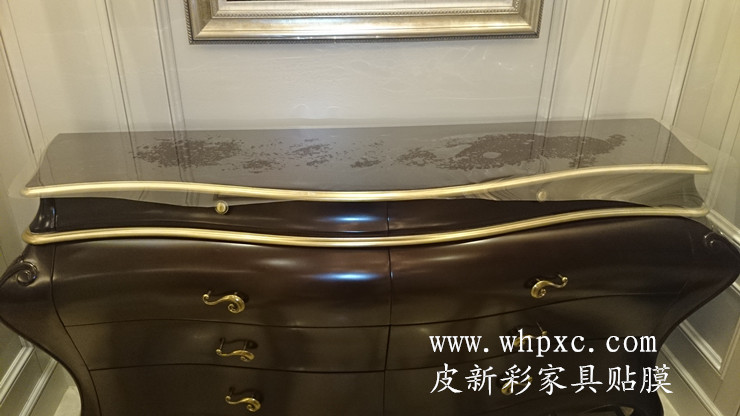豪宅家具贴膜,豪宅家具表面贴膜已经成了标配,新家具一进来就贴膜可以更好的保护家具,让家具日久常新,这种透明纳米膜可以耐200度高温,防止漆面划伤,皮新彩家具贴膜热线:13585956565
