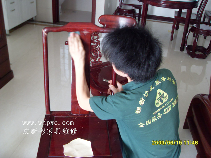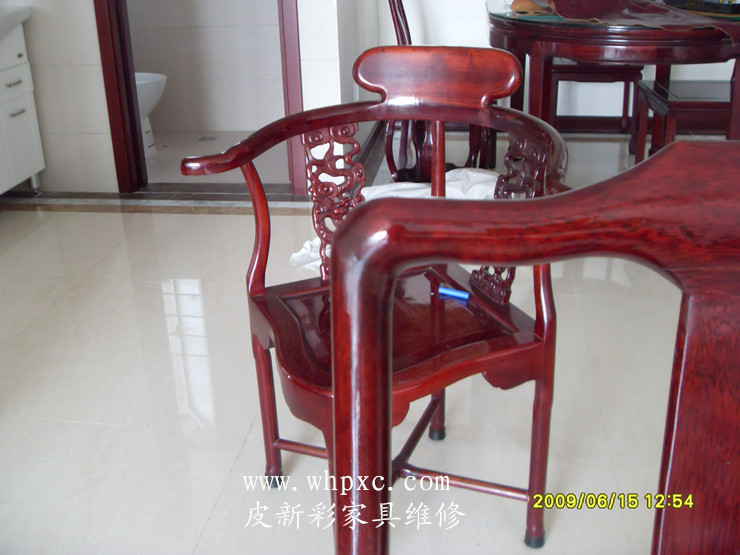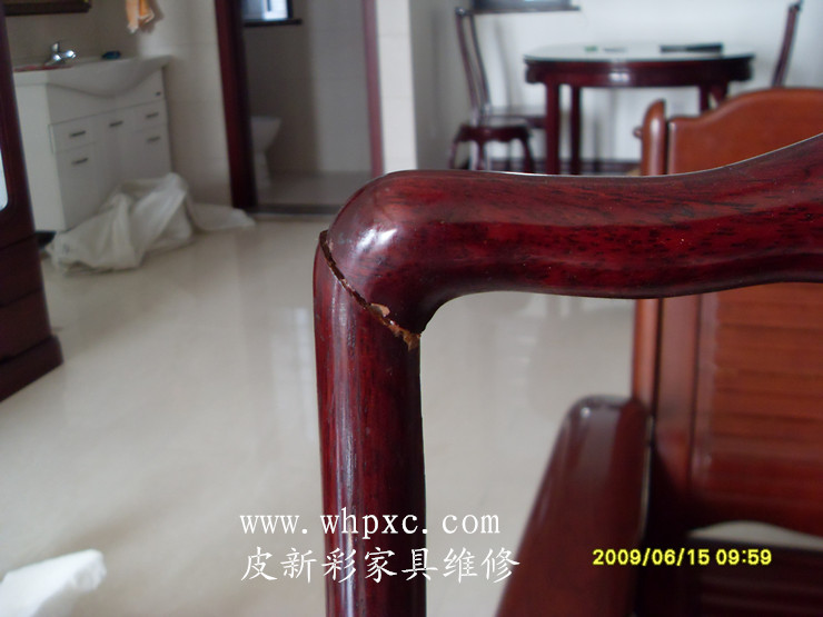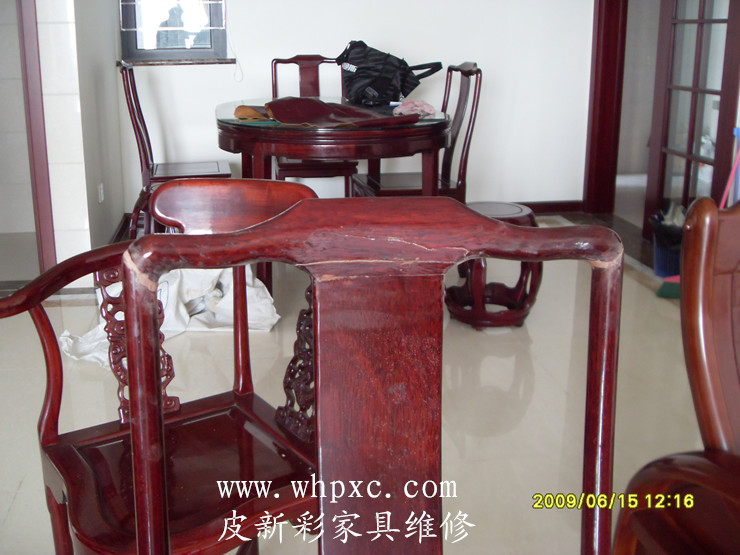 这是做了油漆的假红木的,时间长了出现开裂,这种木头比较硬打钉容易炸裂最好是上胶,打钉之前先钻孔,用锯末填缝比较好,皮新彩家具补漆电话:13585956565