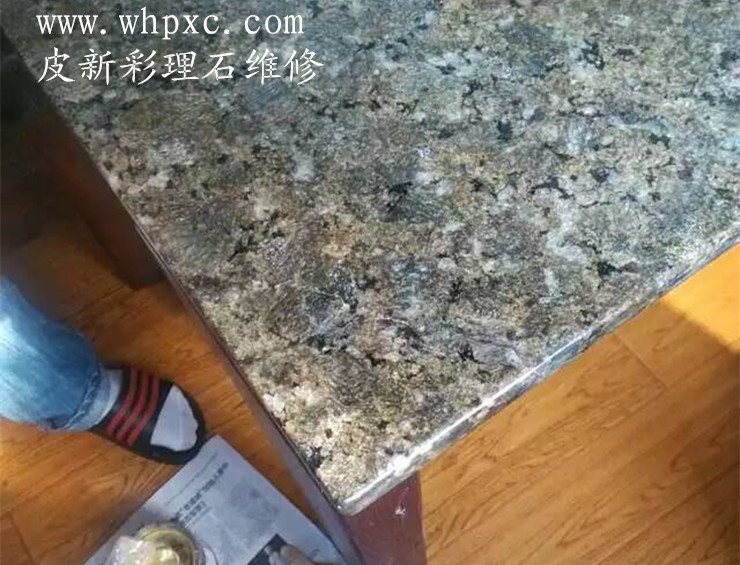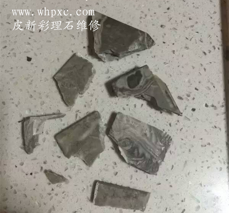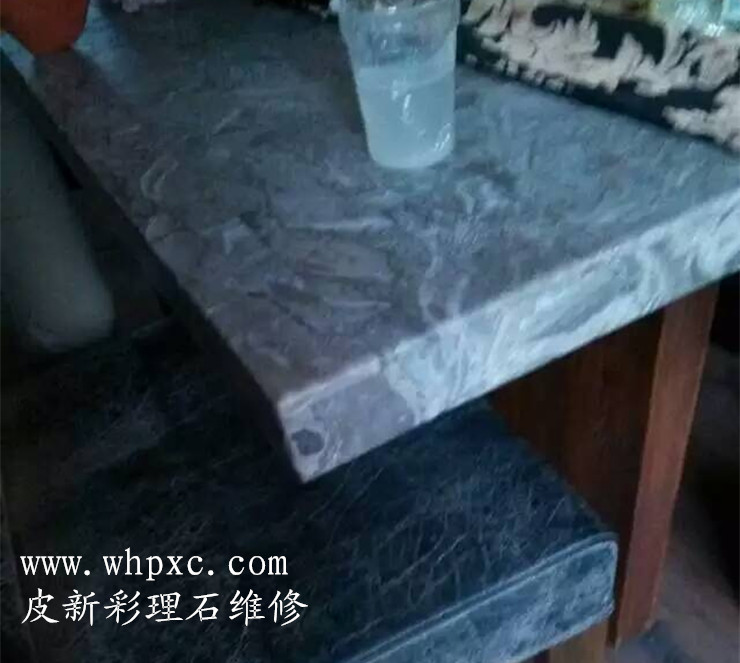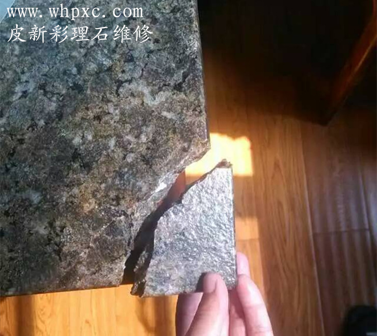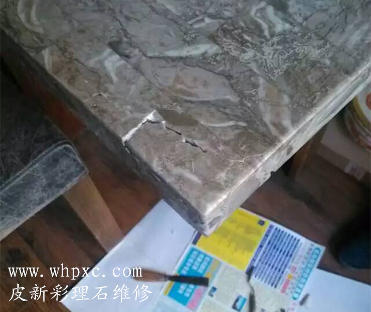 大理石维修,这种理石表面没有做油漆,破碎以后我们可以用理石漆或云石胶一块一块粘好,再把有缺口的地方填平,可以用云石胶加色粉调色,无需抛光,皮新彩大理石维修13585956565