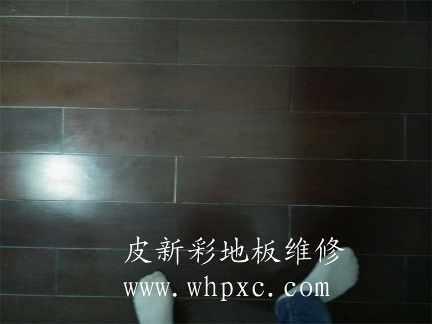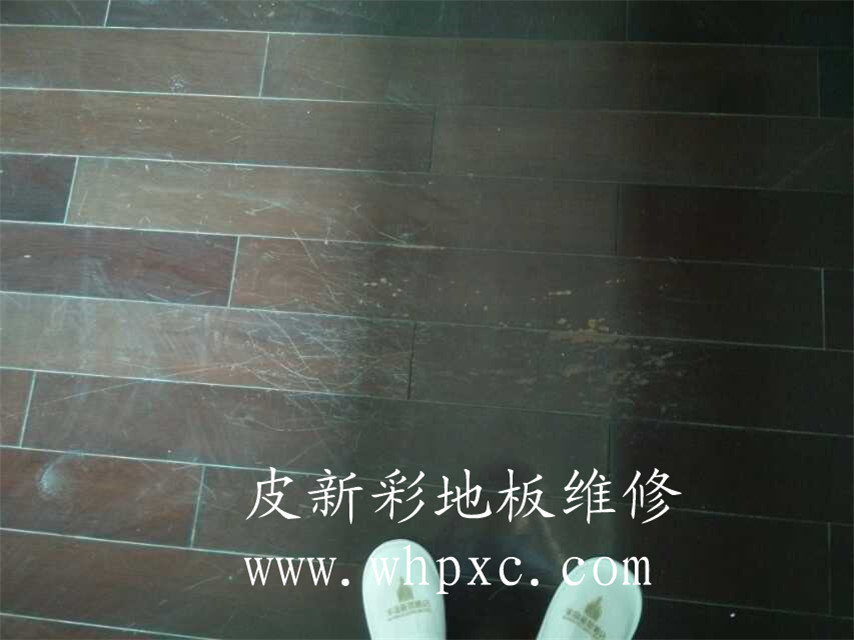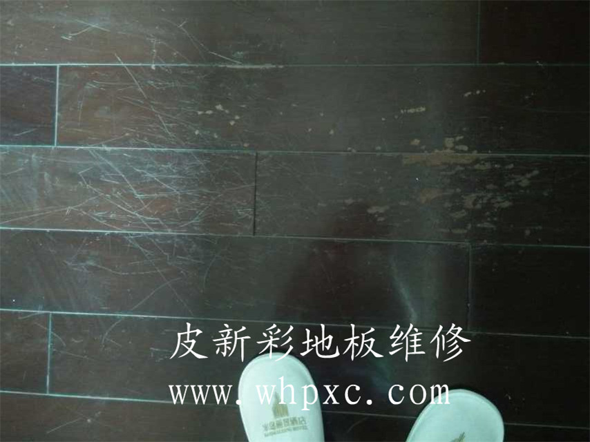 地板划伤补漆,老地板划伤补漆,这种地板太老旧了,要想做好需要整个打磨翻新,客户是租住房东的房子,不想花太大的代价只选择修补,这地板已经没有太多维修价值了,皮新彩地板维修热线: