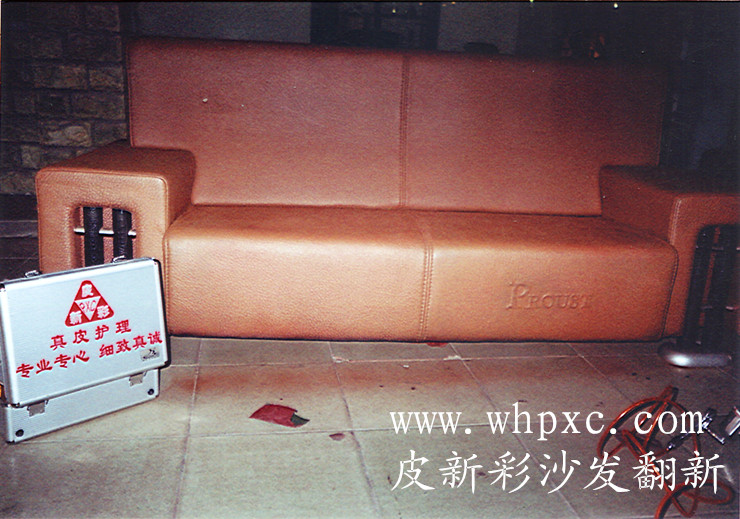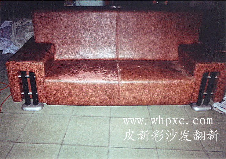 这个沙发放在车库里面已经严重发霉,在翻新之前我们要把沙发海绵拆下来爆嗮,然后把皮面清洗干净,再用磨砂皮成膜剂调色浆进行上色,每上两次色都要打磨一遍做一次固色处理,直到整个皮面颜色一致为止。这个沙发翻新后手感很差。皮新彩翻新热线135 8595 6565