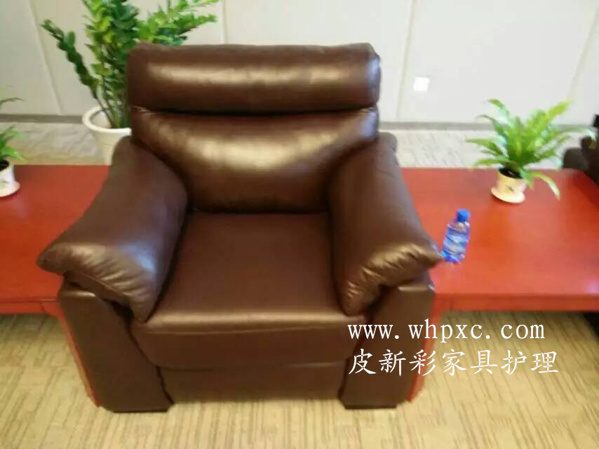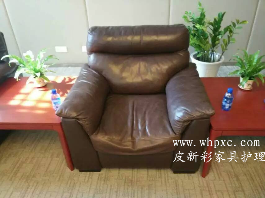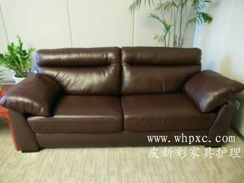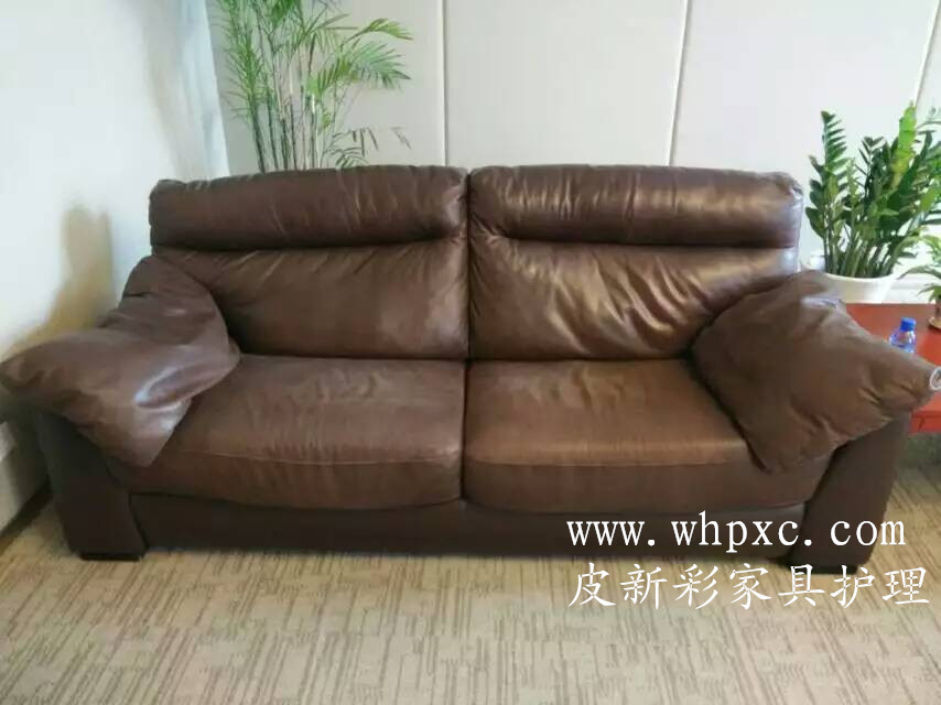 软包牛皮沙发翻新,海绵塌陷,绷带弹簧太松,皮面干枯脱色,我们给他做了海绵真空棉填充,皮面上色翻新,沙发价值为1万左右,全套翻新维修价格为1500元左右,翻新热线135 8595 6565